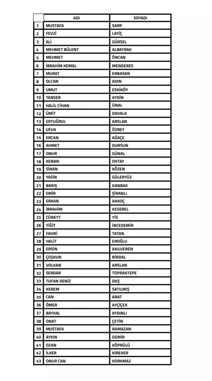 Ümit Davala, Ahmet Dursun ve Olcan Adın’ın da aralarında bulunduğu liste şöyle: