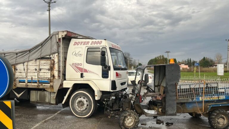 Kamyon ve Tarım Aracı Çarpıştı
