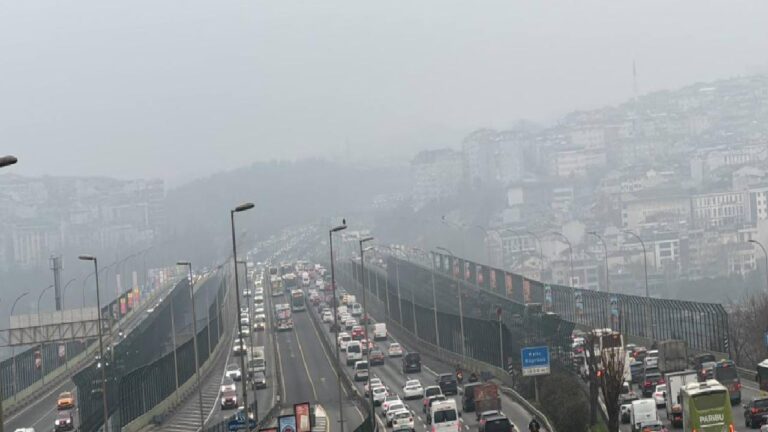 - 15 Temmuz Şehitler Köprüsü'nde görüş mesafesinin düşmesi nedeniyle sis farlarını açan araçlar trafikte kontrollü ilerledi - TEM Bahçeşehir-Mahmutbey mevkiinde…