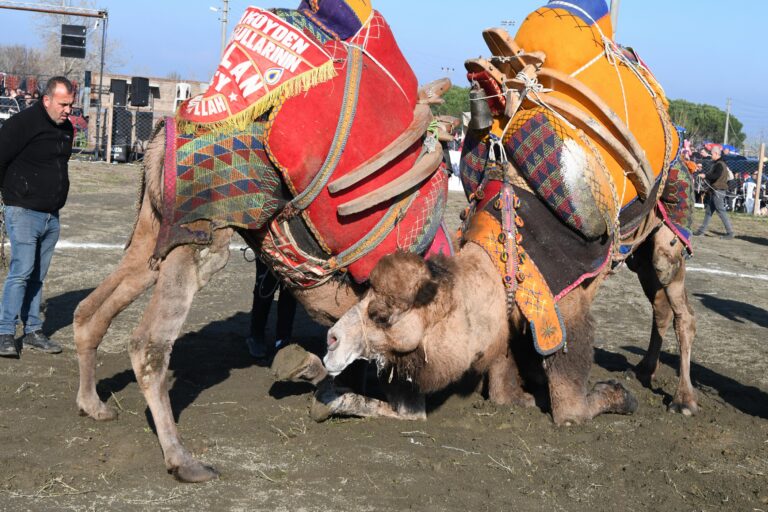 - Ege, Marmara ve Akdeniz bölgelerinin birbirinden ünlü pehlivan develerinin güreştiği gösteri, renkli görüntülere sahne oldu