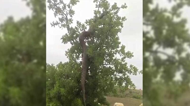 Elazığ’da Besici Ağaçtaki 2,5 Metrelik Yılanı Görüntüledi