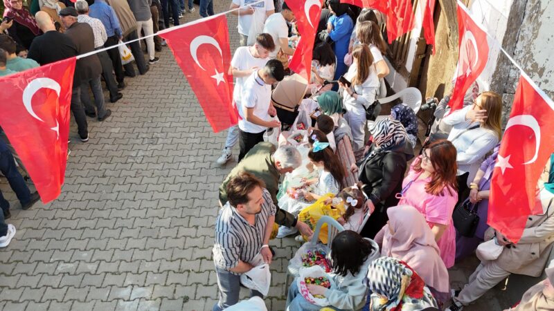Daha sonra İnhisar Kaymakamı İrem Ayşegül Çetin ve Belediye Başkanı Nihal Arslan ile büyükler, sandalyelere oturan ve ellerini öpen çocuklara şeker ve çikolata dağıttı.