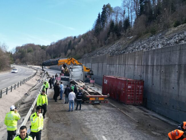 Bilecik’te tırın devrildiği kaza ulaşımda aksamaya neden oldu haberi