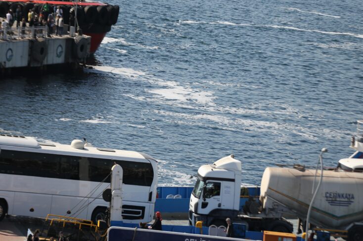 Kordon Boyu ile feribot iskelesinde yoğunlaşan müsilaj, Avrupa Yakası'ndaki sahilde de gözlendi.