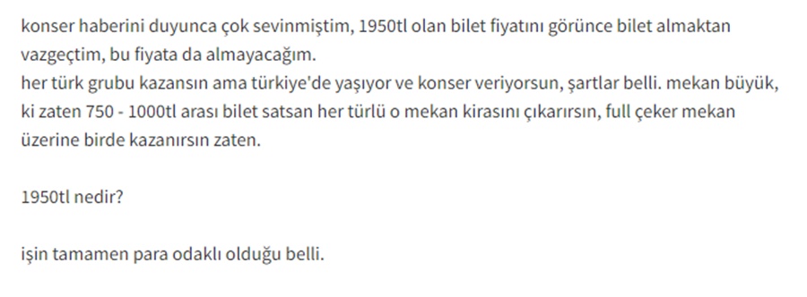 İşte Çilekeş konser bileti fiyatlarına yapılan yorumlardan bazıları: