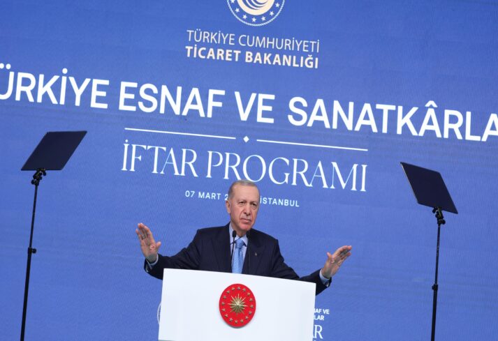 Türkiye'nin dört bir yanındaki 2 milyon 250 bini aşkın esnaf ve sanatkarın tamamına selamlarını, sevgilerini gönderdiğini belirten Erdoğan, Ticaret Bakanlığı başta olmak üzere, gönüllerin birleştirildiği bu programın düzenlenmesinde emeği geçenlere teşekkür etti.