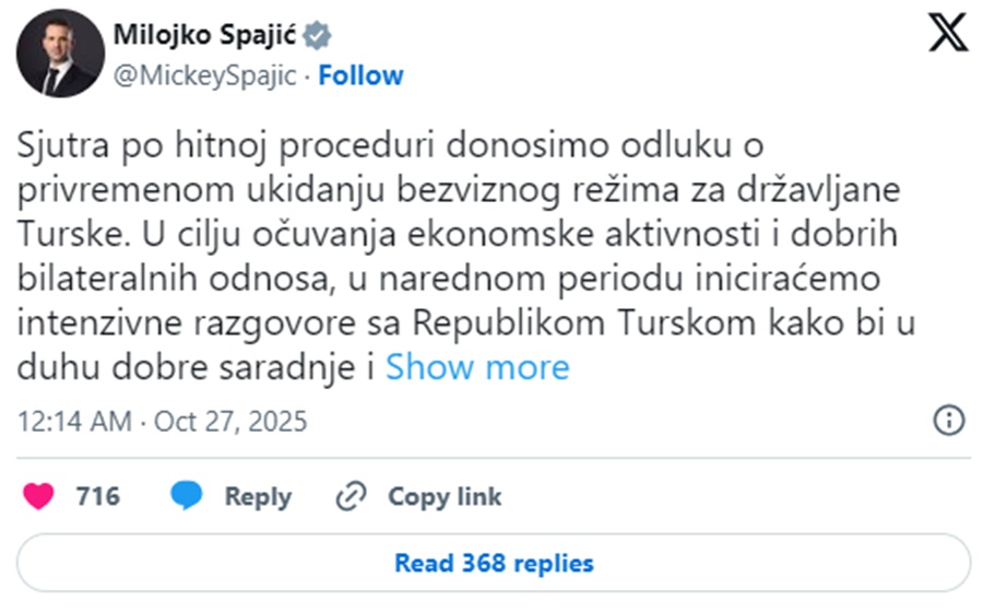 Polis, ülkede yaşayan yabancıların yasal durumlarının inceleneceğini duyurdu. Kısa sürede 45 Türk vatandaşının gözaltına alındığı bildirildi. Gelişmelerin ardından Karadağ Başbakanı Milojko Spajić, Türkiye’ye yönelik vizesiz seyahat uygulamasının “geçici olarak askıya alındığını” açıkladı.