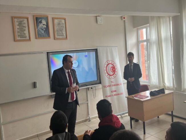 Edirne Ticaret Müdürlüğü ekipleri, 15 Mart Dünya Tüketiciler Günü etkinlikleri kapsamında Ali Ayağ Çok Programlı Anadolu Lisesi'nde program düzenledi.