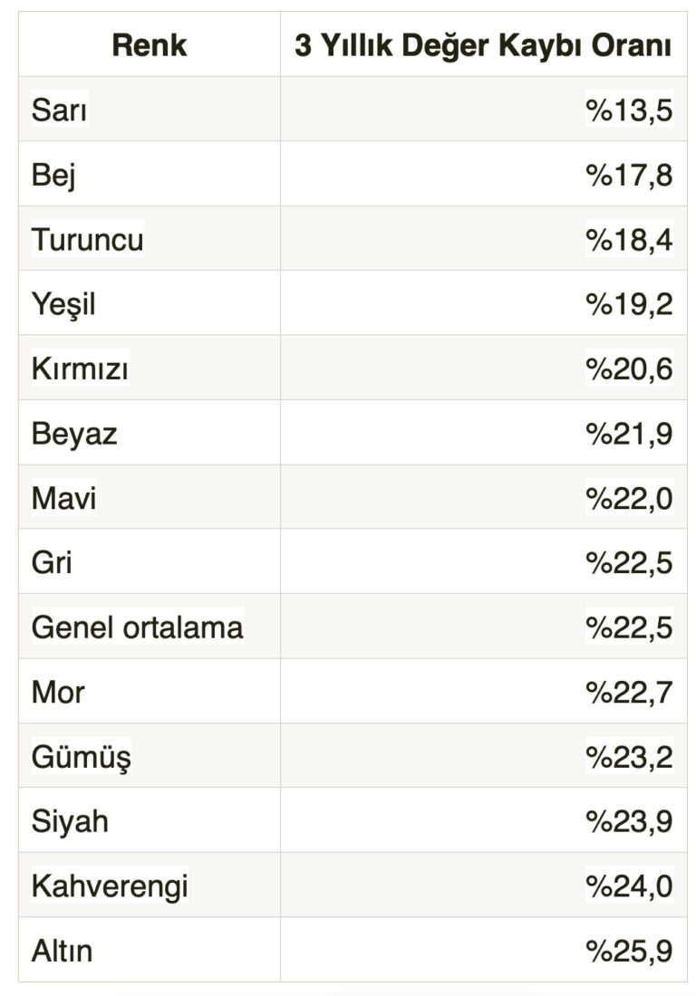 Bu Renk Otomobillerin Değeri Satarken Yüzde 25’ten Fazla Düşüyor
