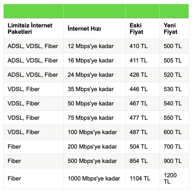 Türk Telekom 1 Temmuz İtibarıyla Geçeceği Zamlı Fiyat Tarifesini Açıkladı