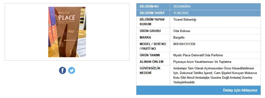Ticaret Bakanlığı, kamu sağlığını korumak amacıyla yürüttüğü piyasa denetimlerinde iki popüler oda kokusu markasına yönelik önemli bir karar aldı. Yapılan incelemeler sonucunda Chakra ve Bargello markalarına ait ürünlerin, sağlık ve güvenlik standartlarına uygun olmadığı tespit edildi. Bakanlık, bu ürünlerin piyasadan toplatılması ve satışlarının durdurulması yönünde karar verdi.