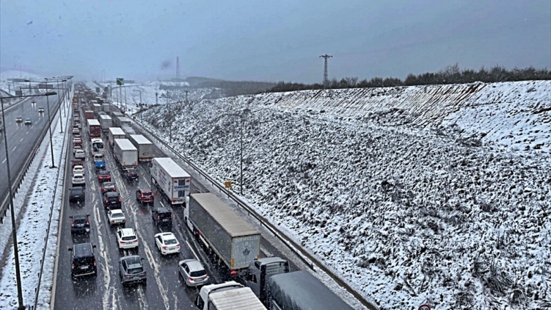 Kar yağışı Kuzey Marmara Otoyolu’ndaki ulaşımı da olumsuz etkiledi. Yoğun yağış nedeniyle ulaşımın güçlükle sağlandığı Körfez kesiminde uzun araç kuyrukları oluştu.