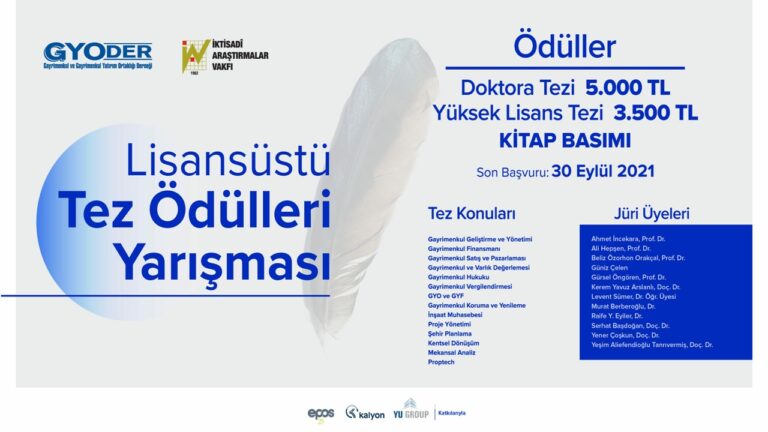 Lisansüstü Gayrimenkul Tez Ödülleri Yarışması’na Son Başvuru 31 Ocak