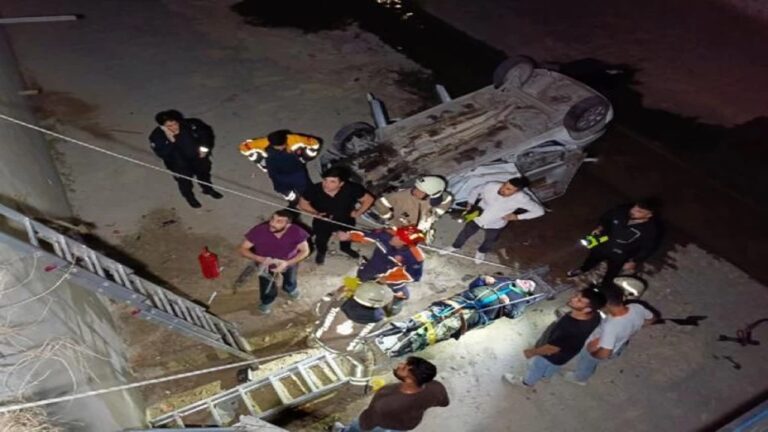Çarpışan Otomobillerden Biri Su Kanalına Düştü