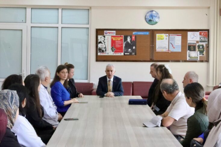 Okul binasını gezen Turan, İl Milli Eğitim Müdürü Hilal Liliyar Özefsun'dan bilgi aldı.
