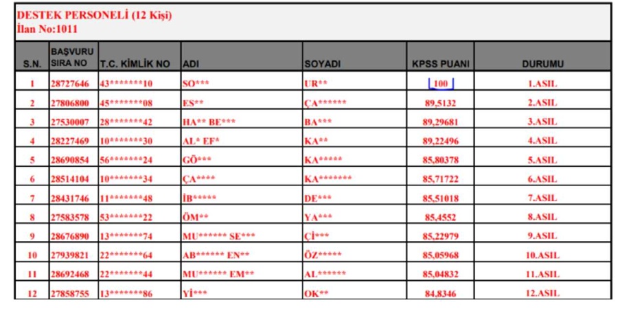 Başvuru süreci Aralık ayı sonunda tamamlanan ve adayların yakından takip ettiği ilan sonucunda, asil ve yedek adayların durumu resmi olarak açıklandı. Açıklanan sonuçlar arasında Türkiye birincisi adayın temizlik personeli kadrosunda yer alması, kamuoyunun dikkatini çeken gelişmeler arasında oldu.