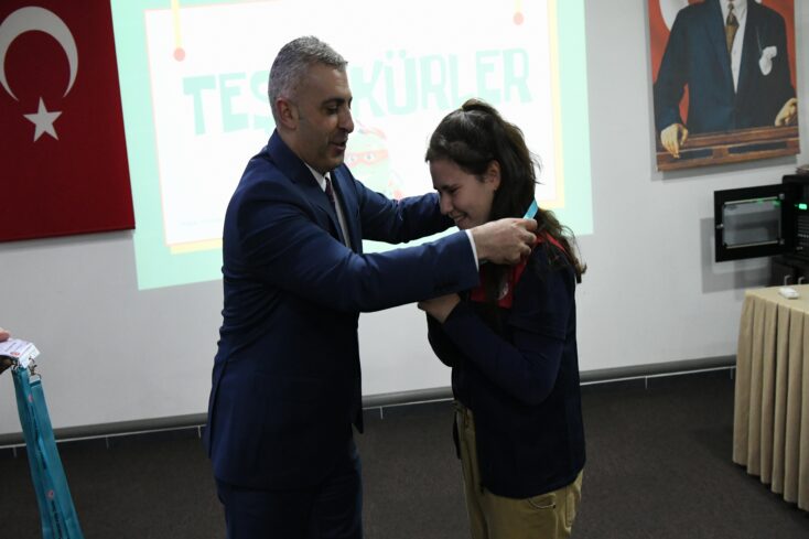 İlçe Kaymakamı Emre Öztürk, programın sonunda öğrenciler için hazırlanan özel yelek ve kimlik kartlarını verdi.