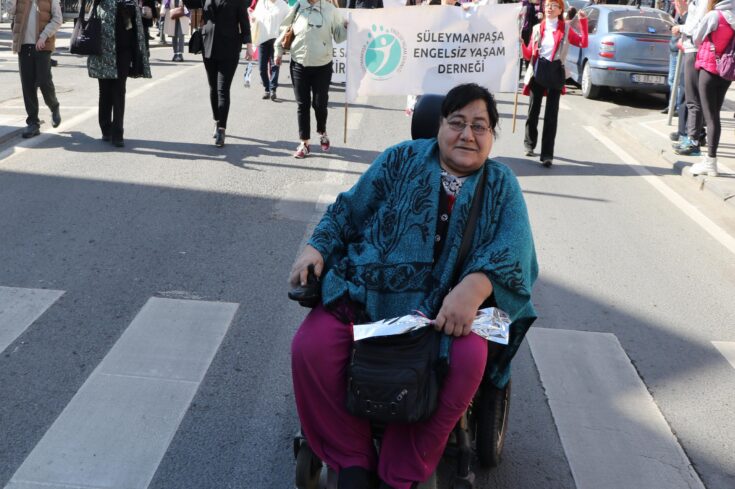 Tekirdağ Büyükşehir Belediyesi ve Tekirdağ Kadın Dernekleri Platformu öncülüğünde Köprübaşı mevkisinde toplanan kadınlar, ellerinde pankart ve dövizlerle Hükümet Caddesi'nden valilik önüne kadar yürüdü.