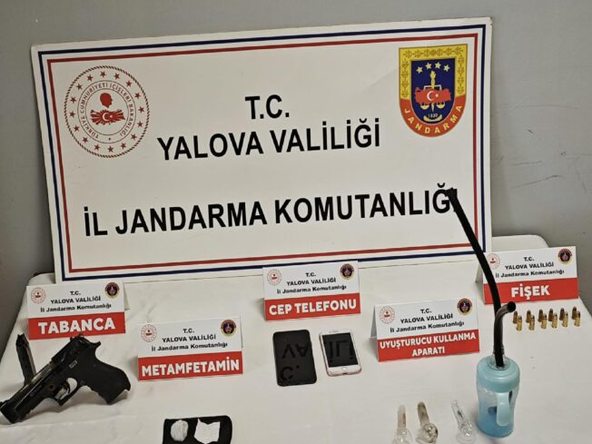 Aramalarda, 32 gram sentetik uyuşturucu, 4 uyuşturucu kullanma aparatı, tabanca, 12 fişek, 3 bıçak ve 2 cep telefonu ele geçirildi.